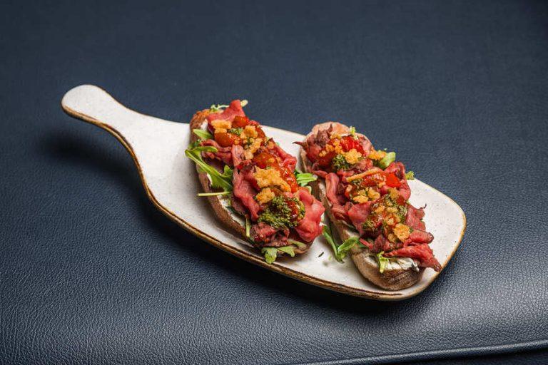 Брускети з ростбіфом та руколою