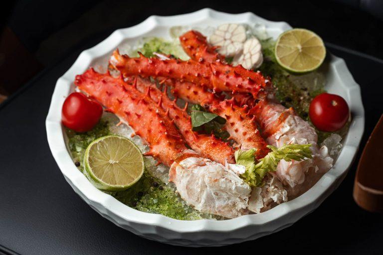 М’ясо клешень королівського краба – це справжній делікатес: ніжне, солодкувате, з легким ароматом моря. Подається запеченим з вершковим маслом, лимоном та спеціями