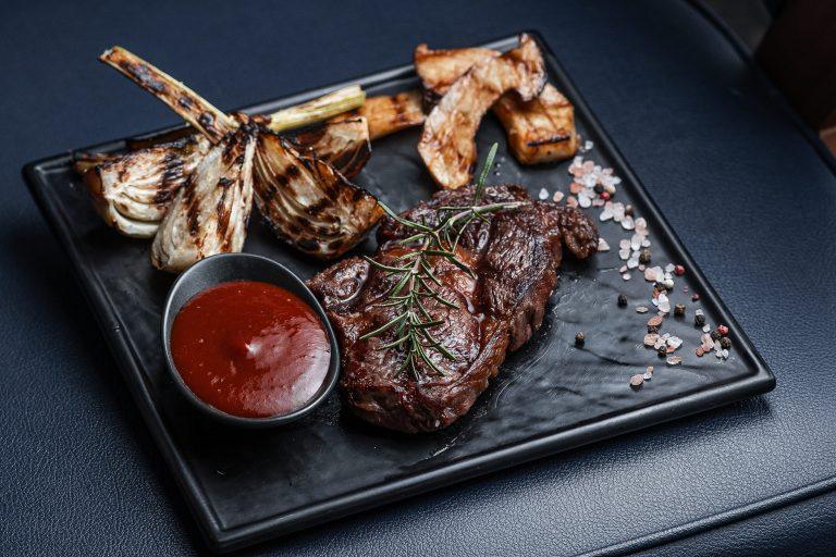 Стейк Рібай вологої витримки із фенхелем та ерінгами із хосперу та соусом BBQ